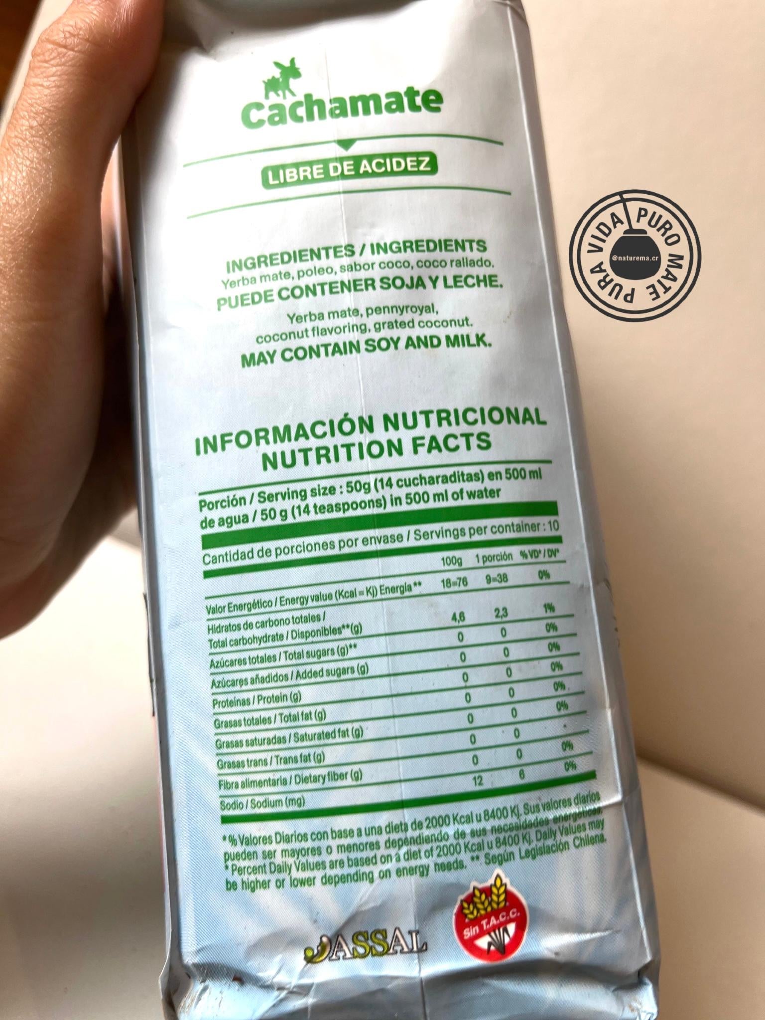 Yerba mate con palo combinada con coco. Una infusión con un deje dulce otorgado por el coco, reduce la acidez.