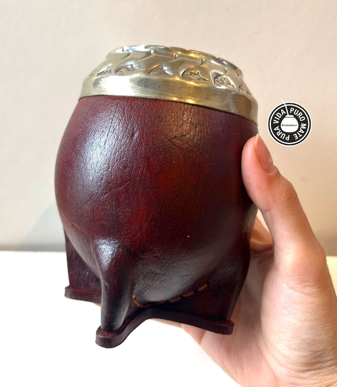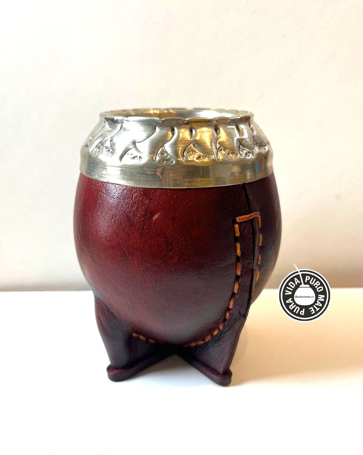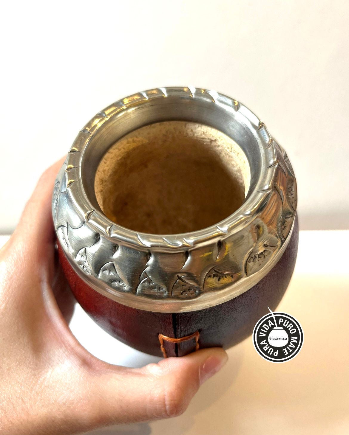 Mate de calabaza argentina, trenzada en cuero natural hecho a mano.