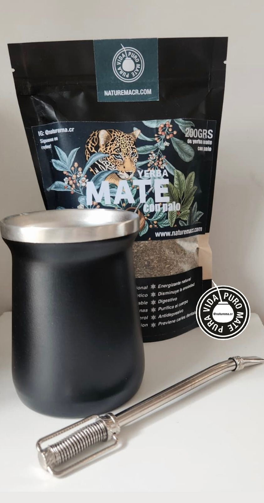 Incluye: 1. Mate de Acero inoxidable2. Bombilla de resorte3. Yerba mate de 200 grs