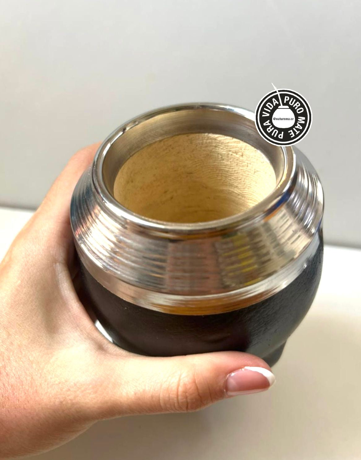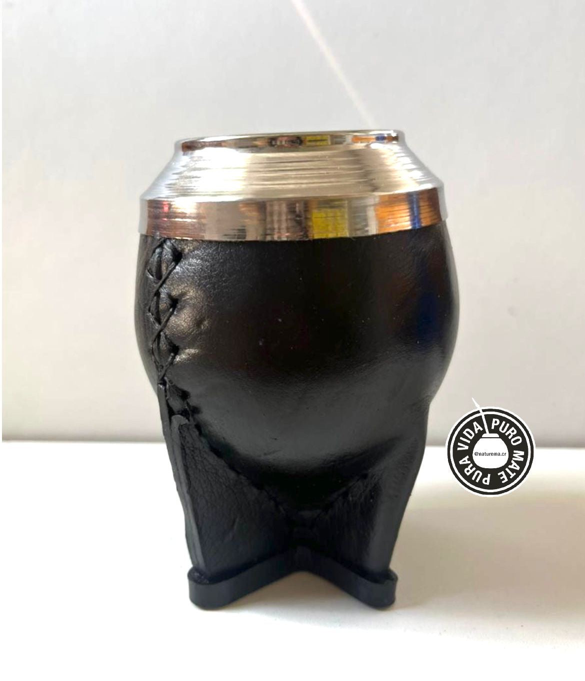 Mate artesanal, de calabaza vegetal y forrado con cuero natural. Estilo Uruguayo